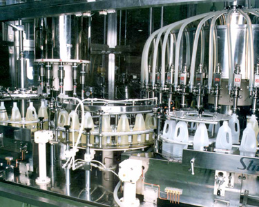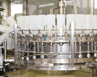 ウエイトフィラは、ひとつひとつの容器の重さを計量し、常に一定重量の充填を行います。当社が誇る世界トップレベルの充填技術です。