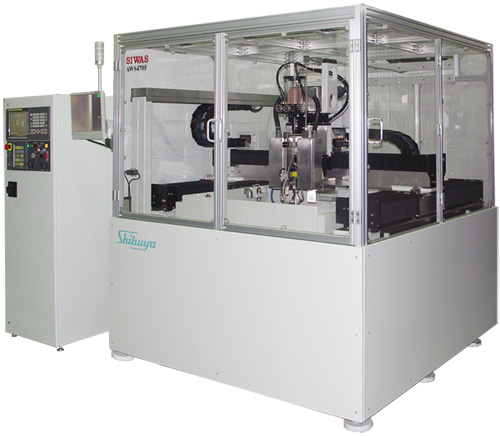 - 本機は、汎用レーザ加工機と同等の高精度加工を実現したウォータジェット切断加工機です。