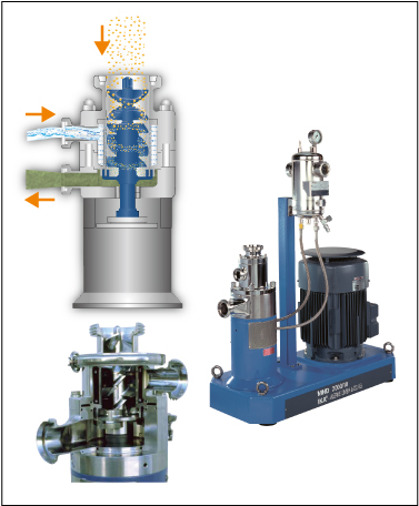 - 凝集を防ぎながら1パスで、迅速で均質なミキシングを行います。