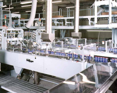 マルチパッカ所定数量のびんや缶などの製品をブランクシートでスリーブ状に包装する機械です。