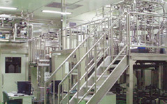 きびしい品質管理を要求される医薬品。シブヤでは、蓄積されたボトリング技術を生かし、アンプルやバイアル、シリンジの注射剤、錠剤やカプセルの固形剤、点滴用バックの輸液剤などの充填・包装を行うシステム、さらにクリーンな操作空間や生産ラインを提供するアイソレータや除染システムなど、様々な製薬設備システムを製造しています。