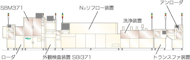 オプションのボール搭載検査システム(SBI371)と連結することによりフルオート搭載検査ラインを構築できます。